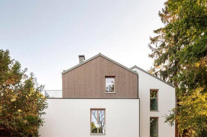 Detached housesWooden façadeGabled roofConversion / Renovation / Building in existing structuresBrick