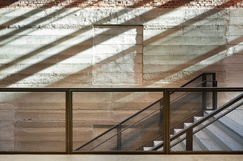 Aufnahmen einzelner Details oder der Überblick aus der Vogelperspektive machen sichtbar, welche zu entdeckende geometrische Vielfalt in vermeintlich nur vertikal und horizontal Gebautem steckt. Materialien, Übergänge und Perspektiven verbinden sich zu Motiven, die fast abstrakt wirken. Die gebauten Funktionalitäten des Gasteig HP8 werden zu Flächen und Formen, zu Farben und oftmals ungesehenen Aspekten der Architektur. Wo man sonst nur schnell von einem Raum zum nächsten geht, entdeckt Esch spannende Ansichten. Wo der Blick normalerweise abschweift, hält der Fotograf einen einzelnen Moment fest. So entstehen Bilder, die den vertrauten Ort ungewohnt und neu erscheinen lassen.