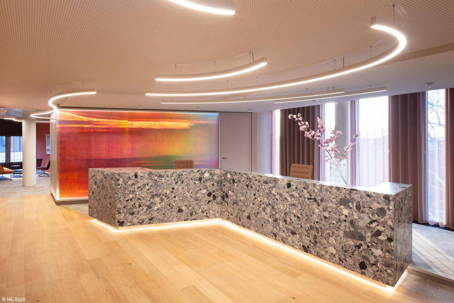 Die Büroräume für eine ökologische und ethische Fondsgesellschaft inszenieren das Thema Natur