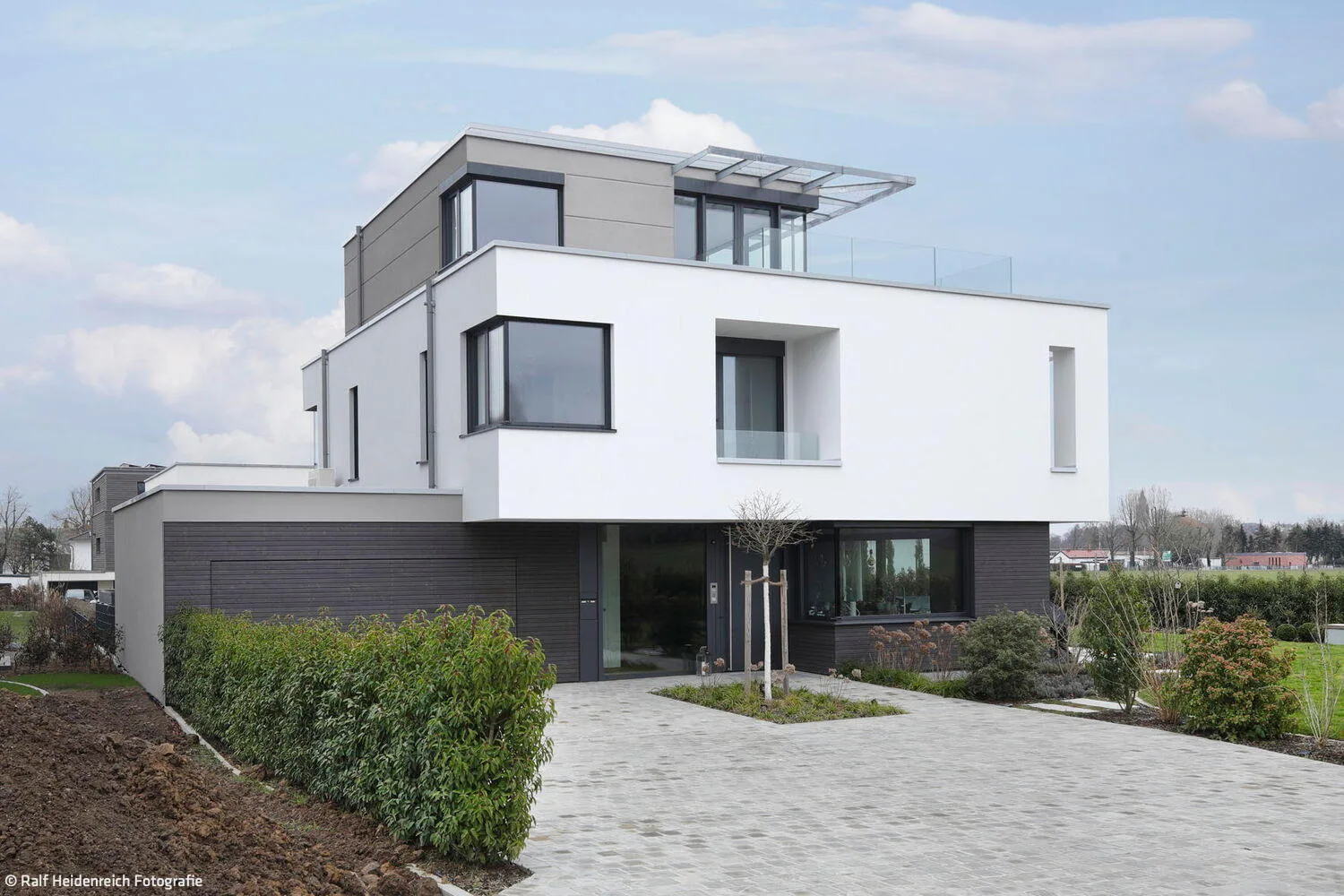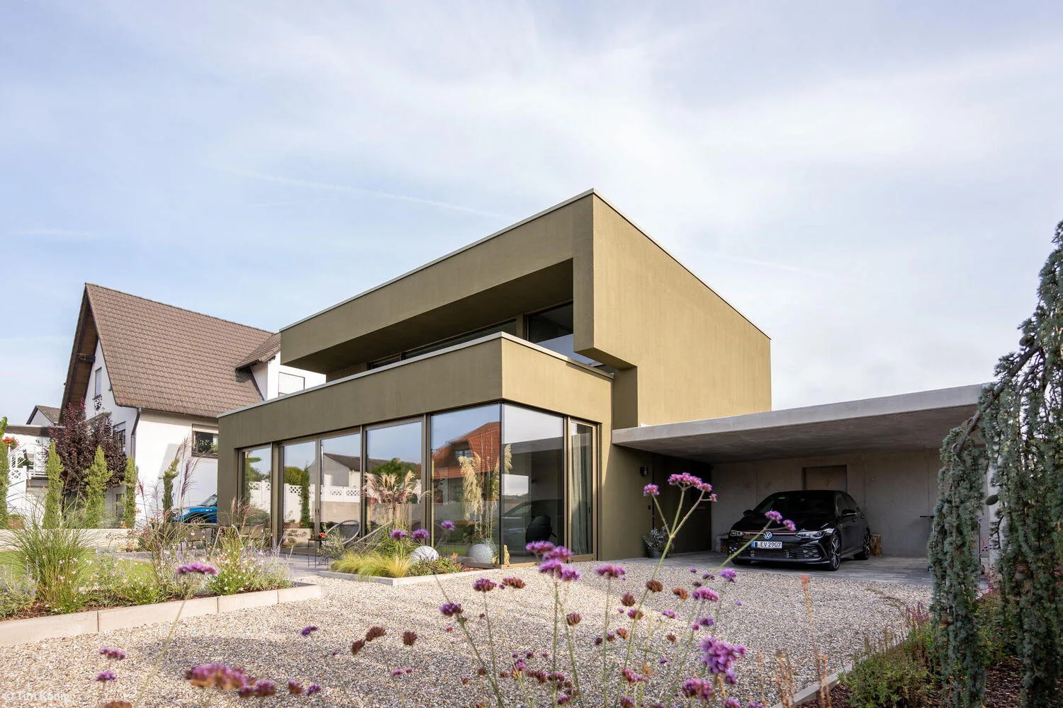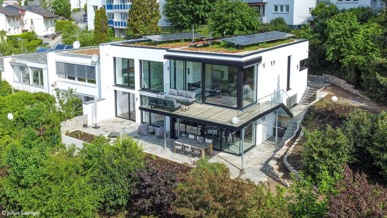Bungalow mit kubischem Erscheinungsbild nutzt die Hanglage geschickt