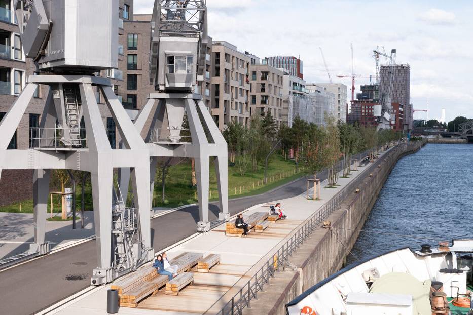 In der gesamten HafenCity sind die neuen Quartiere umsäumt von befestigten Kaikanten, die aus der ehemaligen Nutzu...