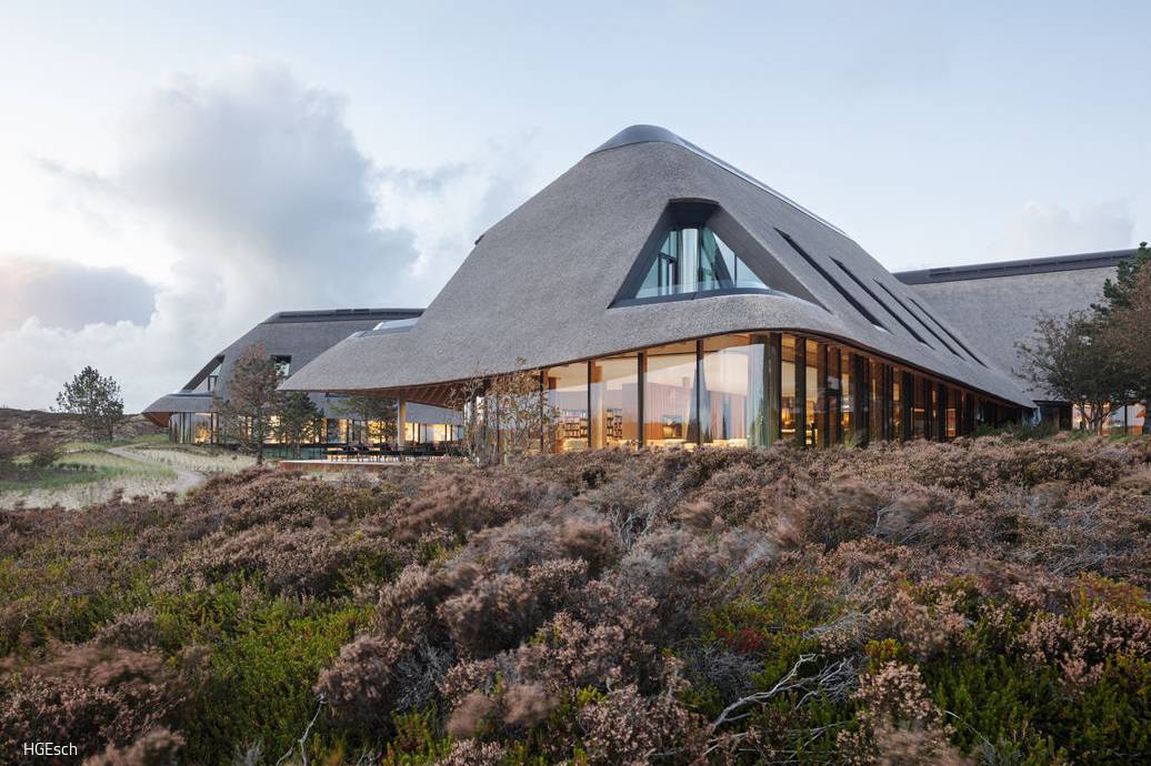 Ein Gesundheitsresort auf Sylt fügt sich eindrucksvoll in die Landschaft ein