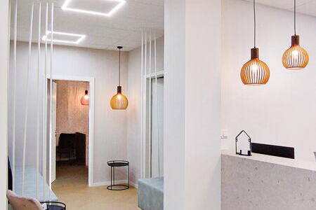 Eine Hautarztpraxis setzt auf reduzierte Materialien und Lichtakzente