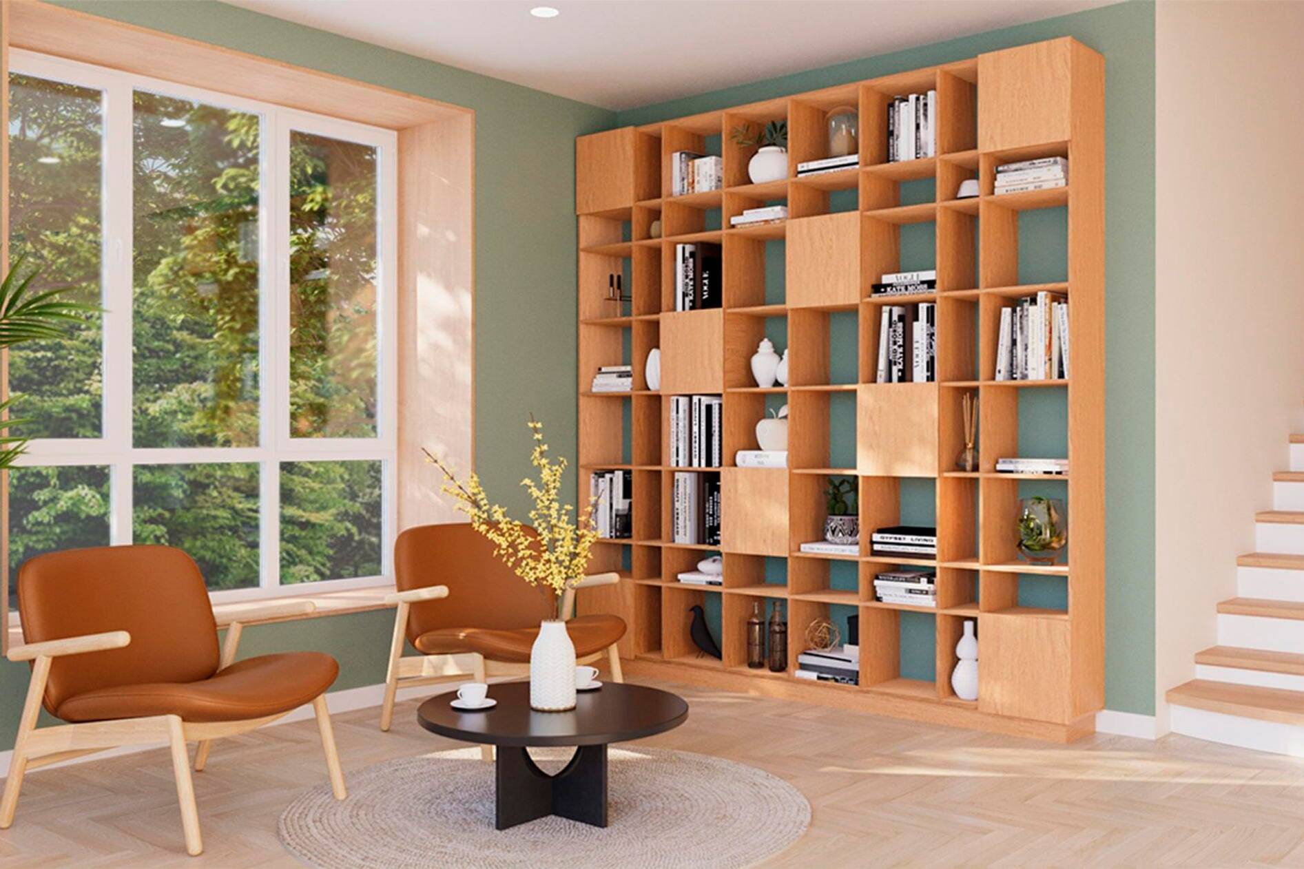 Symmetrie vermittelt in Innenräumen Ordnung, Ruhe und Harmonie. Dieses Prinzip greift das Regal Grid (Design: Raul...