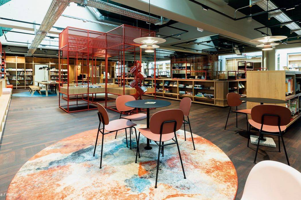 Im neu gestalteten Forum Velbert nimmt die Bibliothek eine wichtige Funktion ein. Der niederländische Innenarchite...