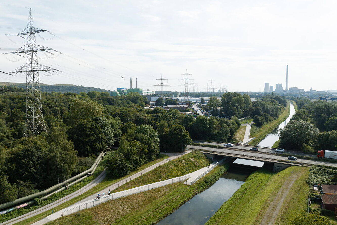 Die neugestaltete Emscher-Promenade ist ein wichtiger Teil der blau-grünen Infrastruktur