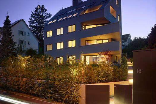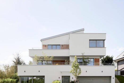 Mehrgeschossiges Wohnhaus entwickelt sich mit dem Hanggrundstück und öffnet sich der Umgebung