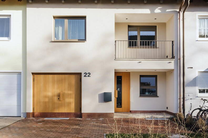 Ein Einfamilienhaus erhält besondere Fenster und passende Sonnenschutzlösungen